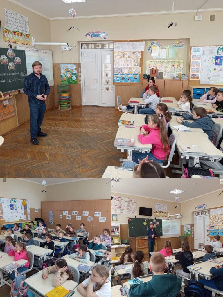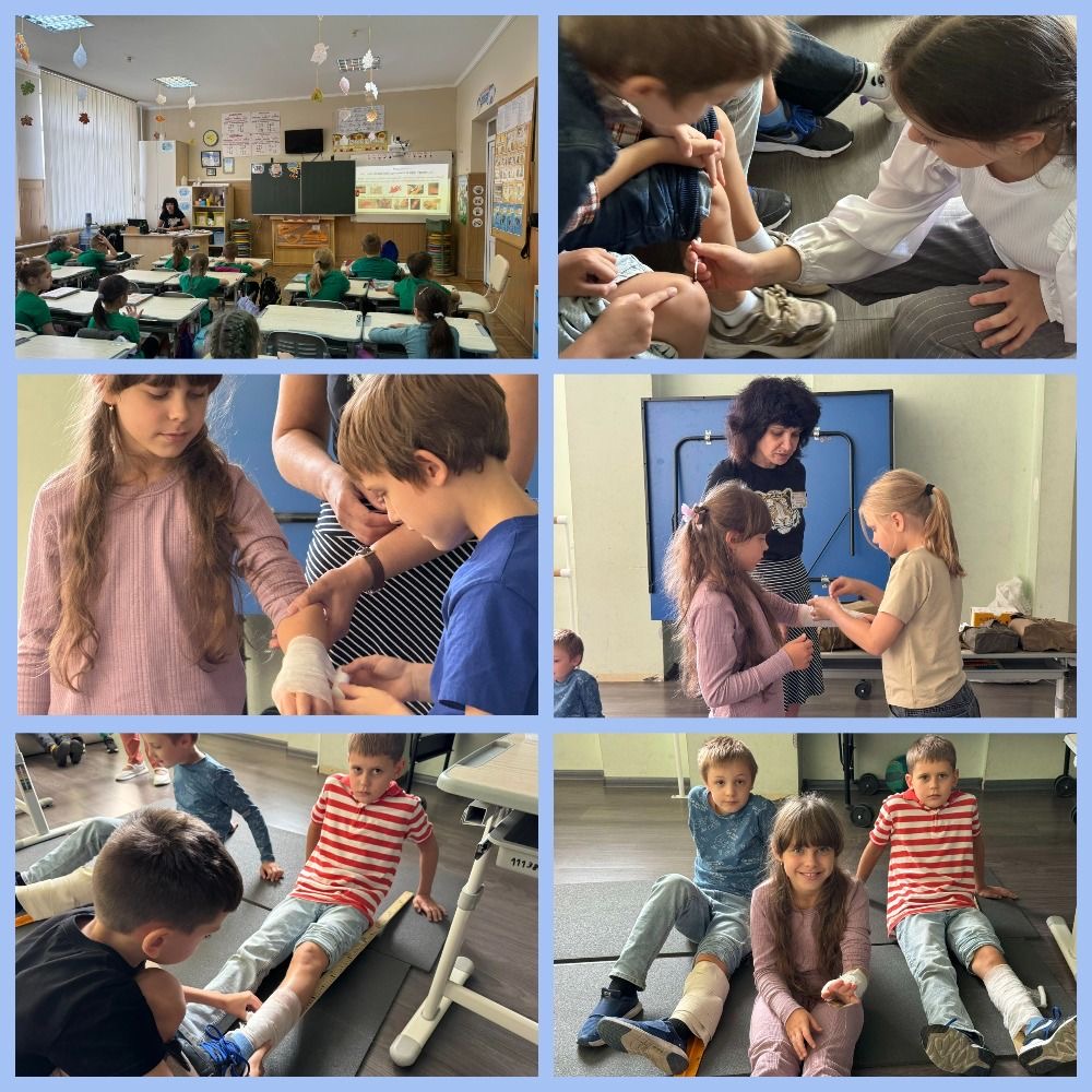 У рамках тижня безпеки учні 3-Б та 3-В класів провели спільний захід: “Як захиститися від травм”, де ознайомилися із поняттям – травматизм та надання першої домедичної допомоги у разі травмування. На практичному занятті діти вчилися обробляти рани, накладати тугі пов’язки, знерухомлювати травмовані частини тіла. А також навчилися, як правильно одягати протигаз та доправити травмовану людину до місця надання медичної допомоги.