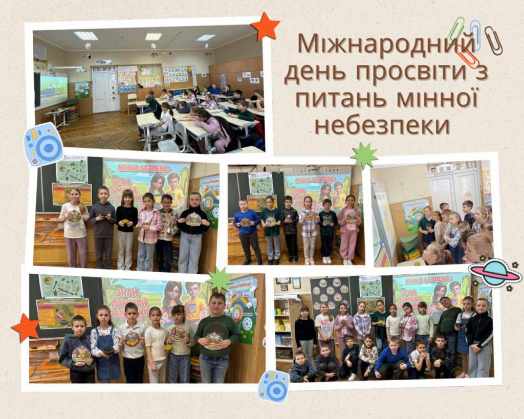3 квітня 2026 року в нашій школі пройшли інформаційні заходи до Міжнародного дня просвіти з питань мінної небезпеки. На уроці за темою “Мінна безпека: знай, помічай, повідомляй!” ми дізналися про види мін, як розпізнавати загрози та правила поведінки при виявленні підозрілих предметів. Знає кожен учень: “Стій! Не чіпай! Телефонуй 101!”